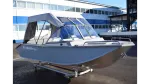 Алюминиевый катер Неман-500 PRO. Длина 5060 мм, Ширина 2040 мм, Высота транца 380/510 мм, Мощность мотора 60 л/с, Пассажировместимость 5 чел., Килеватость 12°/15°. Включены стандартная комплектация (рым алюминиевый на форштевне, полимерно-порошковая покраска бортов и палубы, швартовые утки, сливная пробка на транце, блоки плавучести и др.) и набор дополнительных опций.