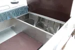 Легкость в управлении при движении с мотором обеспечивается за счет концептуально нового расположения кормовых рундуков, в свою очередь позволяющее использовать пространство между ними под топливный бак.