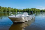 Точнее, Алюмакс-355 - это почти плоскодонка в кормовой части. У лодки переменная киливатость, на транце она всего 5 градусов. Поэтому, Алюмакс-355 легко выходит на глиссирование, имеет минимальную осадку и остойчив. При этом он устойчивее на волне и на курсе по сравнению с классическими плоскодонками.
