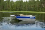 В отличие от гребной лодки имеет специальный транец для крепления мотора. Транец цельносварной лодки является частью корпуса. Вместимость — до двух человек. В стандартную комплектацию лодки входит 2 весла и черпак.