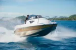 Совершенно уникальный катер в своём типоразмере, который имеет просторную каюту для ночлега троих человек. Оснащён экономичным водометным движителем, не боящимся мелей, травы и мусора, и прочнейшим корпусом из сплава алюминия и магния. Толщина корпуса на днище составляет 4 мм, а на бортах и в наборе — 3 мм. Показать все