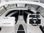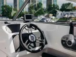 Новая концепция и уровень комфорта. Ветровое закалённое стекло фирмы Taylor Made Glass & Systems, с полноценными калёными окнами, на которые уже в стандартной комплектации установлен стеклоочиститель, позволяют обеспечить лучшую обзорность и комфорт в данном классе судов. Откидная дверца ветрового стекла, складной трап, высокие рейлинги и ступеньки в кокпите – все это обеспечивает высокую функциональность и безопасность. Судно идеально подходит в качестве лодки для путешествий всей семьёй, с возможностью разместиться на ночлег, а благодаря съёмному заднему сиденью может легко эксплуатироваться в режиме троллинга при ловле рыбы. Надежное оборудование, отличная обзорность, множество отсеков для багажа и большой ходовой тент – всё это стало стандартом для модели Phoenix 600HT.