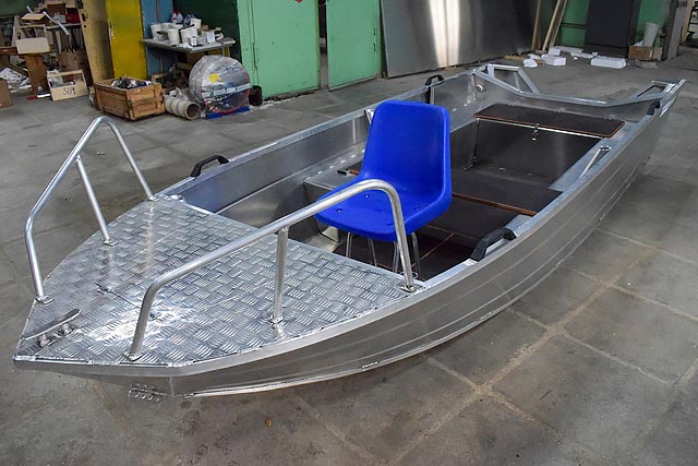 Алюмакс-415 – четырёхместная алюминиевая лодка для рыбалки или отдыха. Также может использоваться в качестве разъездной. Выпускается в румпельном и консольном вариантах.